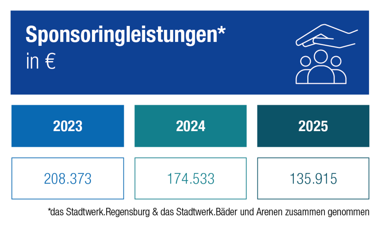 Um eine nachhaltige, lebendige und vielfältige Region mit attraktiven Möglichkeiten für die Bürgerinnen und Bürger zu gestalten, braucht es, neben eigenen Veranstaltungen, ganz konkrete finanzielle Unterstützung für die Partner, die dies ermöglichen. Dabei wählen wir sowohl die Empfänger für Spenden als auch unsere Sponsoring-Partner sehr gezielt aus, um möglichst langjährige Kooperationen zu entwickeln, von denen beide Seiten, vor allem aber auch die Menschen in Regensburg und der Region, profitieren. Beim Umgang mit Spenden und Sponsoring handeln wir stets nach den Grundsätzen der Transparenz und Wirtschaftlichkeit. 2020 konnten pandemiebedingt viele Veranstaltungen im kulturellen und sportlichen Bereich nicht stattfinden. Dies macht sich für das Jahr 2020 deshalb auch in den Spenden- und Sponsoringvolumina bemerkbar.