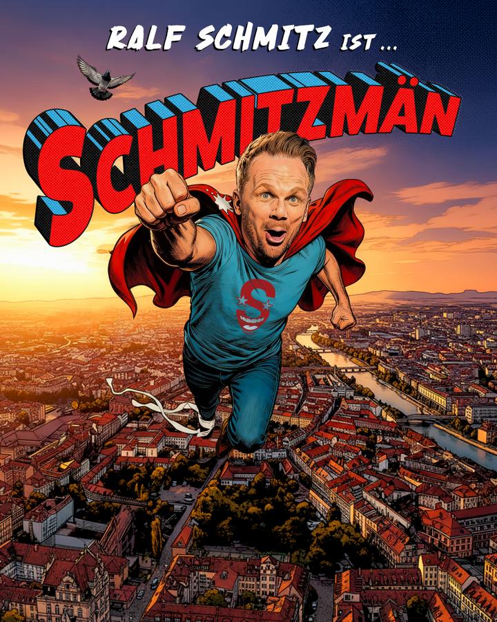 Um diesen neuen Wahnsinn noch zu toppen, braucht es einen echten Superhelden. Und der kommt jetzt: Wenn sich der Vorhang hebt und der Spot auf ihn fällt, wird aus Ralf Schmitz: SCHMITZMÄN! Der letzte seiner Art.