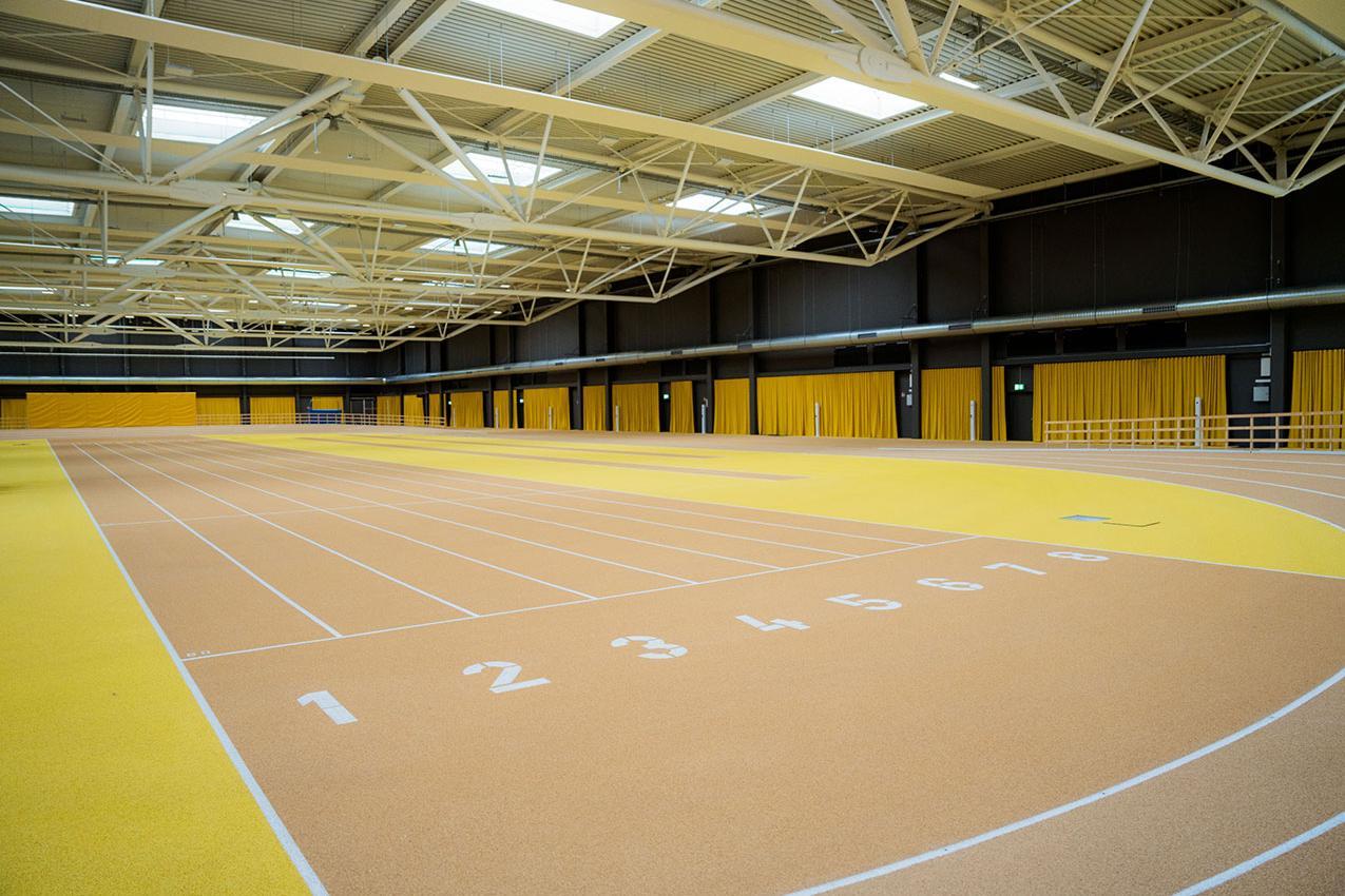Die Leichtathletiktrainingshalle ist insgesamt 6.110,75 Quadratmeter groß und hat eine lichte Höhe von 12 Metern. Auf den Rängen finden 199 Zuschauer Platz.