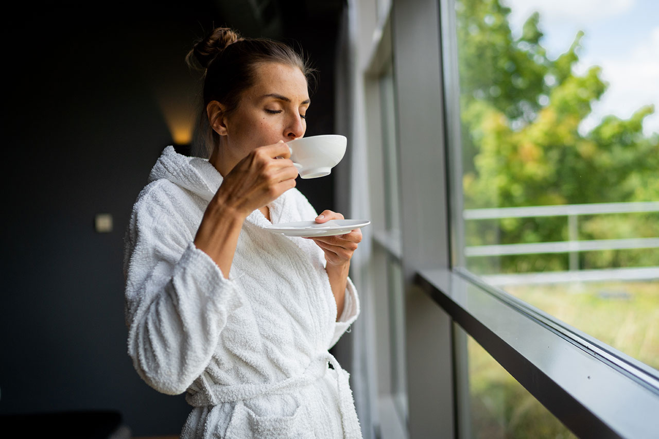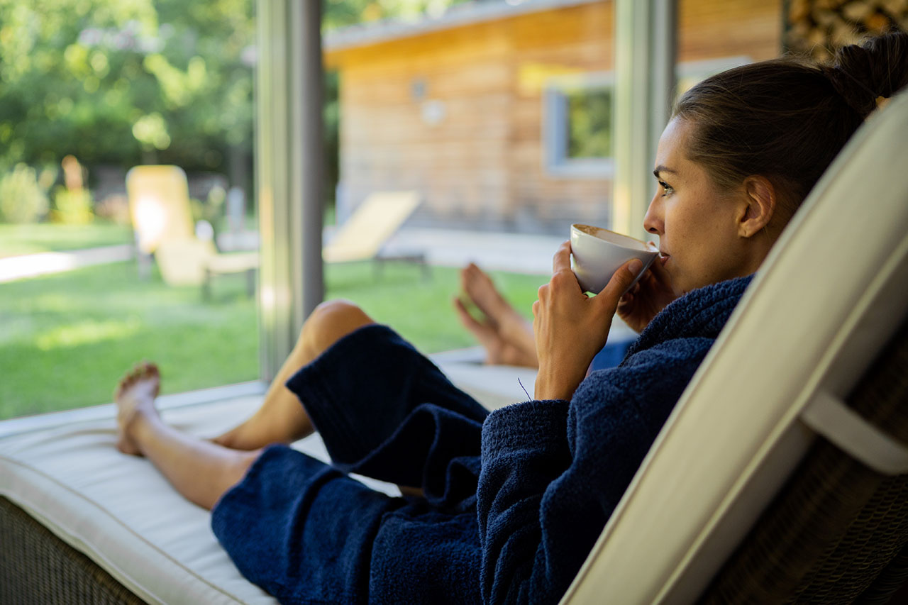 Nehmen Sie sich etwas Zeit für sich selbst, schließen Sie entspannt die Augen und lassen Sie sich vom angenehmen Gefühl völliger Ruhe umhüllen. In unseren zwei neu gestalteten Ruheräumen können Sie Kraft tanken, die Seele baumeln lassen und die naturnahe Atmosphäre genießen. Dabei verleihen Erdtöne und hochwertige Naturmaterialien den Räumlichkeiten ein besonders gemütliches Ambiente, während der herrliche Ausblick ins Grüne den Alltag voll und ganz vergessen lässt.
