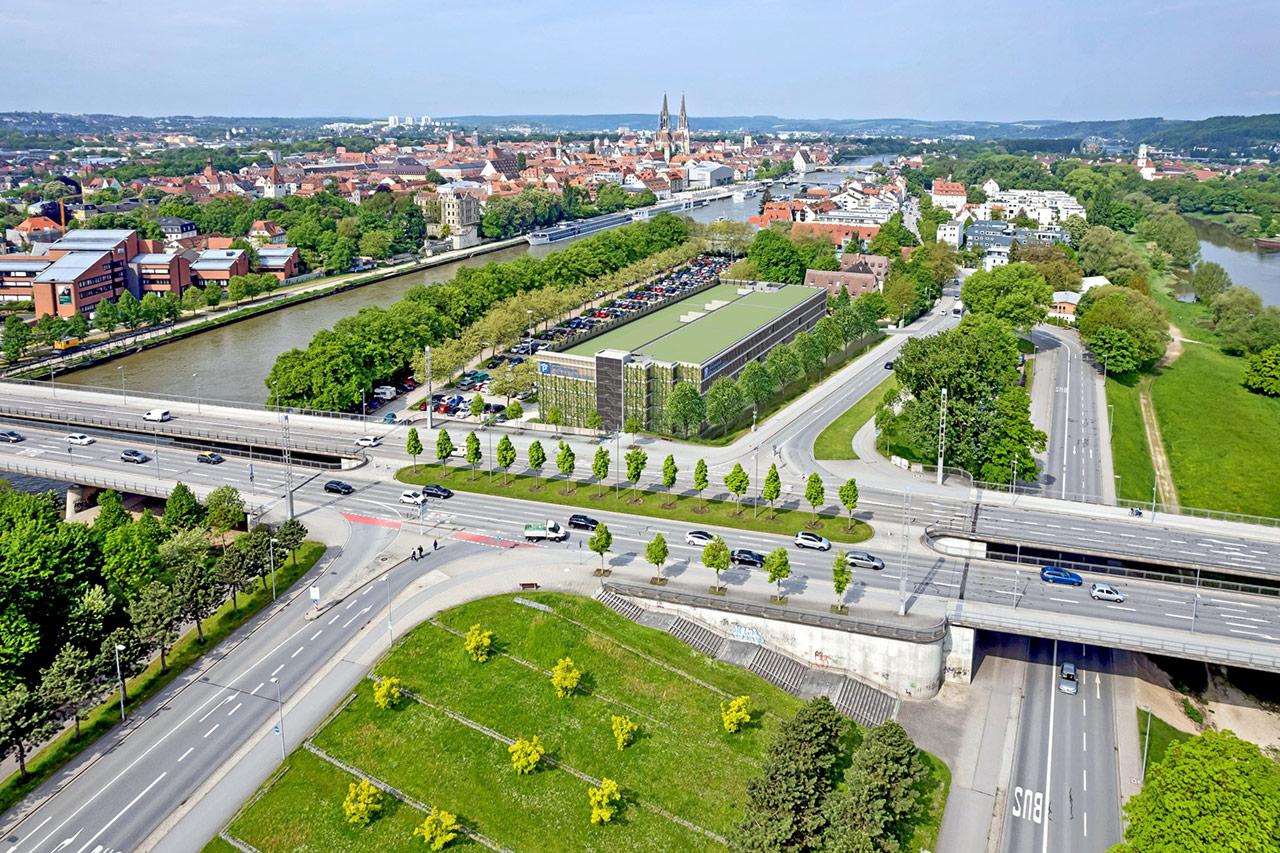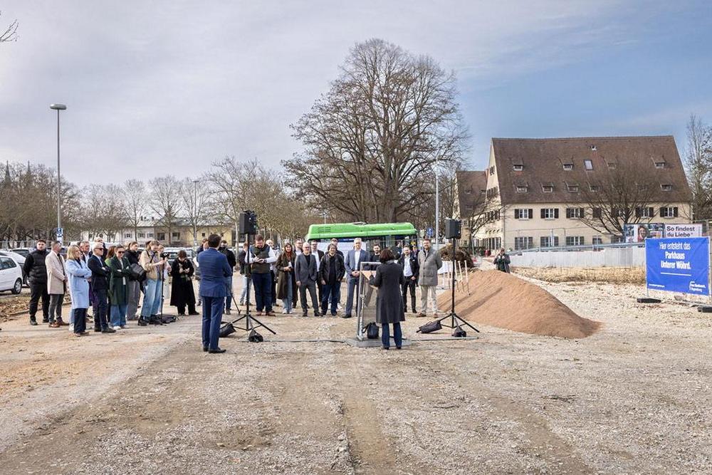 Das Parkhaus Unterer Wöhrd – als Teil der neuen Mobilitätsdrehscheibe am Unteren Wöhrd – entsteht in Systembauweise direkt an der Wöhrdstraße auf dem Gelände des ehemaligen Eisstadions auf einer Fläche von rund 3.000 Quadratmetern. Darin werden 580 Pkw auf insgesamt 10 Ebenen Platz finden. 50 Ladepunkte für E-Fahrzeuge sind in der Ebene 0 vorgesehen, dazu Stellplätze für Familien, Frauen und Menschen mit Handycap. Mit dem Spatenstich am 3. März wurde das Bauvorhaben offiziell gestartet.